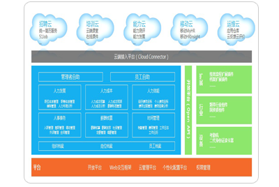 產(chǎn)品基于企業(yè)人力資源創(chuàng)新戰(zhàn)略,通過(guò)專(zhuān)業(yè)的人力資源核心平臺(tái)、社交化的全員自助服務(wù)平臺(tái)以及開(kāi)放的云端應(yīng)用創(chuàng)新,能承接企業(yè)選育用留四大業(yè)務(wù)流程: